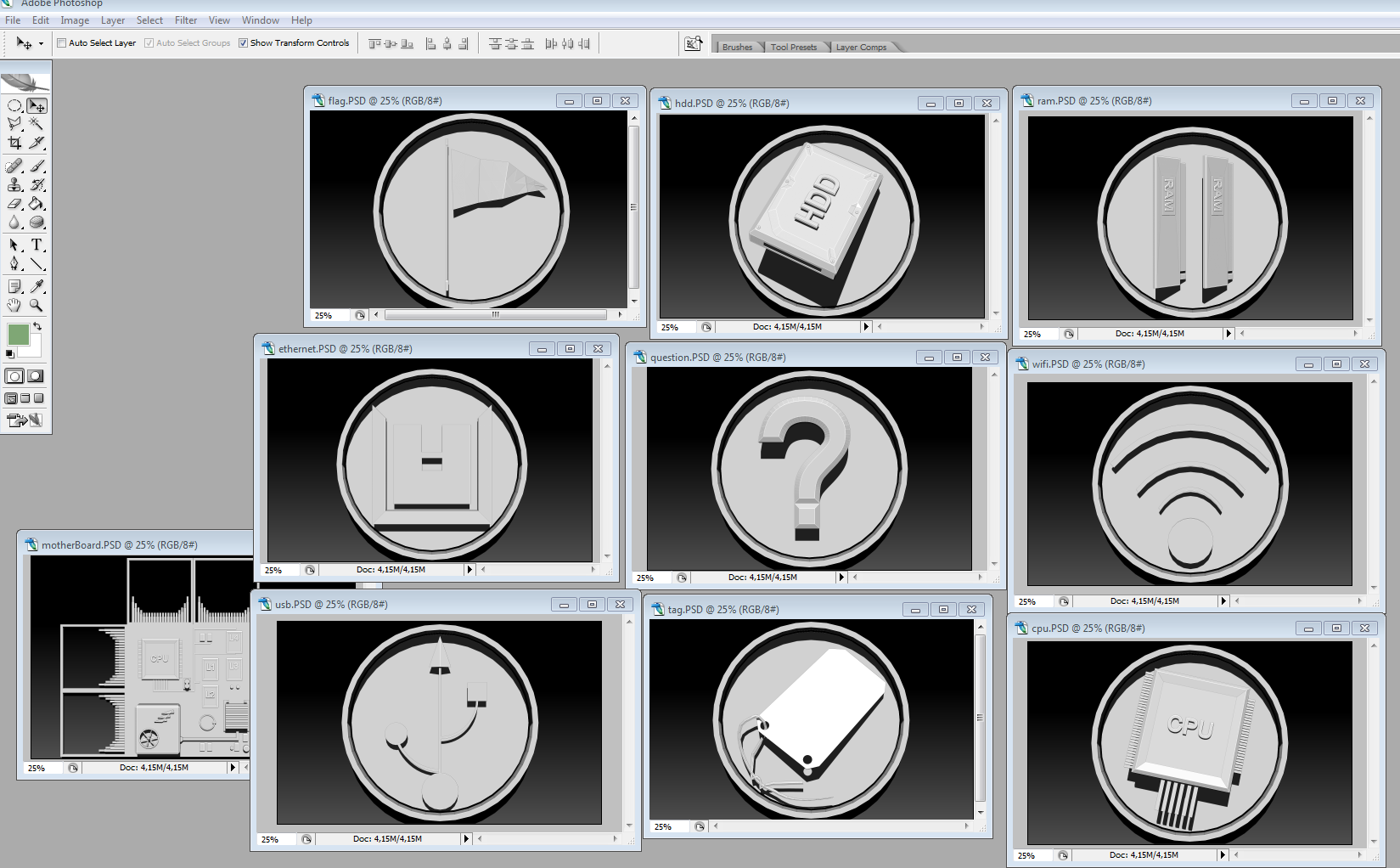 Have a single failure icon left to create, a robot hand along with some background drops and a small motherboard.
