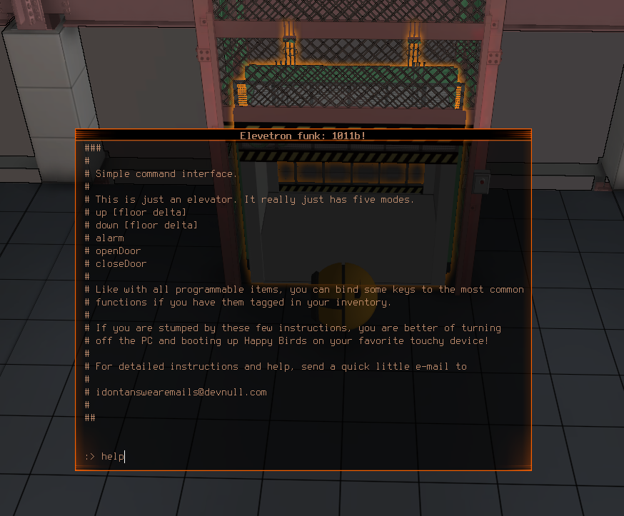 Thinking of various ways to solve programmatic puzzles and how to create interesting problems. Lot of the interactive items are programmable, so you can basically fire up a few of these windows to the items you wish to control and queue up the commands in order. Very simple to start with.