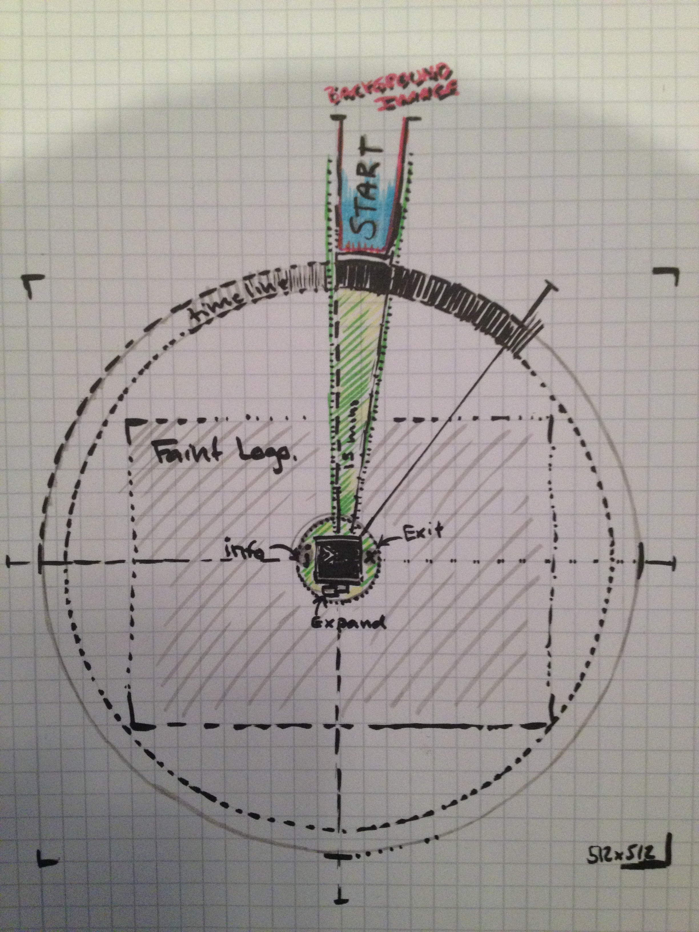 Filled in a lot of planning documents, sketches and trying to collect my thoughts on a number of items. After writing all that text and clearing my head a bit I started working on the Main Menu again. My previous idea was just bugging me and it was annoying me when I was trying to take it a bit further, so I sat down and started over to see if I could rough up something better. Something procedural and void of a giant logo that stares you in the face.