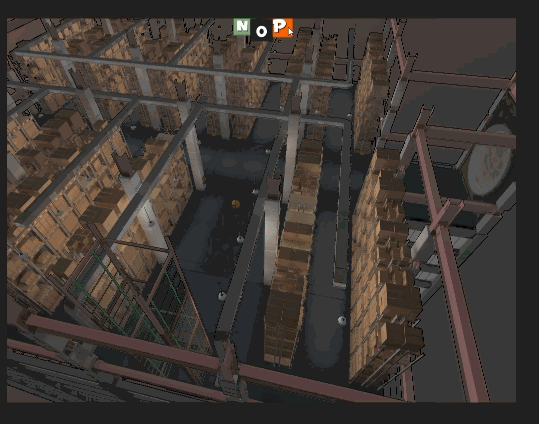 When the player sees that green floor in the navigation mode, he will be able to place his navigation nodes and triggers onto that. Right now, the mesh is just generated automatically from the actual navigation mesh, but it might actually be worth exporting it and cleaning up in Modo so that it looks better and does not contain all the glaring cuts and holes that Unity might add or remove.